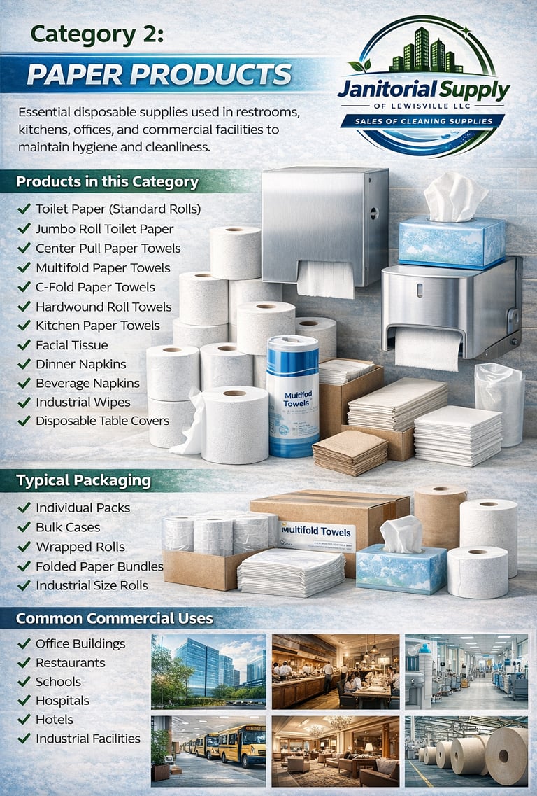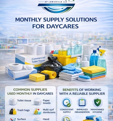 That’s how Janitorial Supply of Lewisville LLC was born — a company dedicated to providing dependable, eco-friendly cleaning supplies tailored specifically for the needs of restaurants, offices, and commercial facilities.